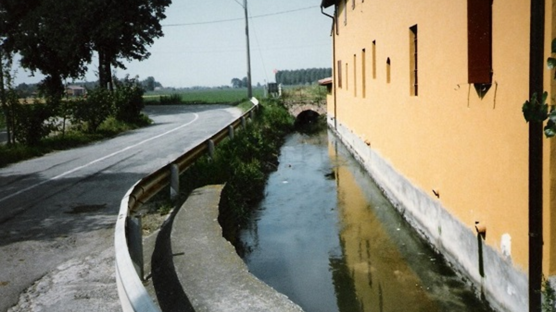 In questo punto, all’incrocio tra via Libertà e via Corticella a Trebbo di Reno, la canaletta Ghisiliera lambisce due lati di questa costruzione, localmente detta “la bella Venezia” (fig. 1).