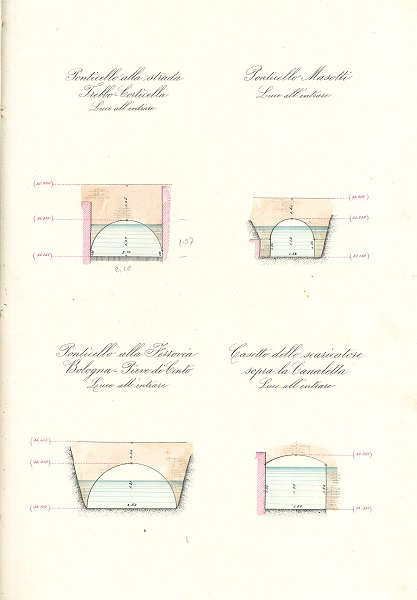 Fig. 3. Alfonso Saccenti, Canaletta Ghisiliera, ponticello alla ferrovia Bologna-Pieve di Cento. Disegno tratto da Canaletta Ghisiliera. Sezioni e manufatti, Archivio Canali di Bologna, 1903.