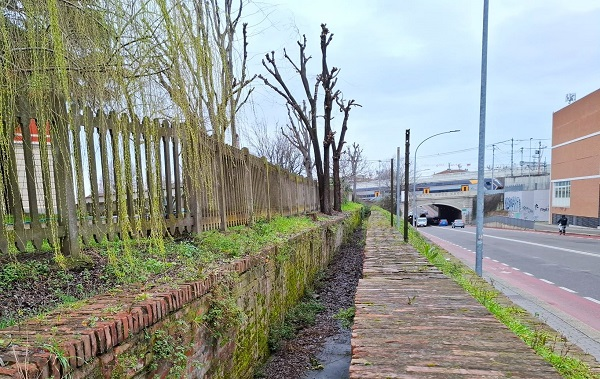 Fig. 1. Tratto scoperto della Canaletta delle Lame in via Zanardi, Foto Archivio Canali di Bologna, 2025.