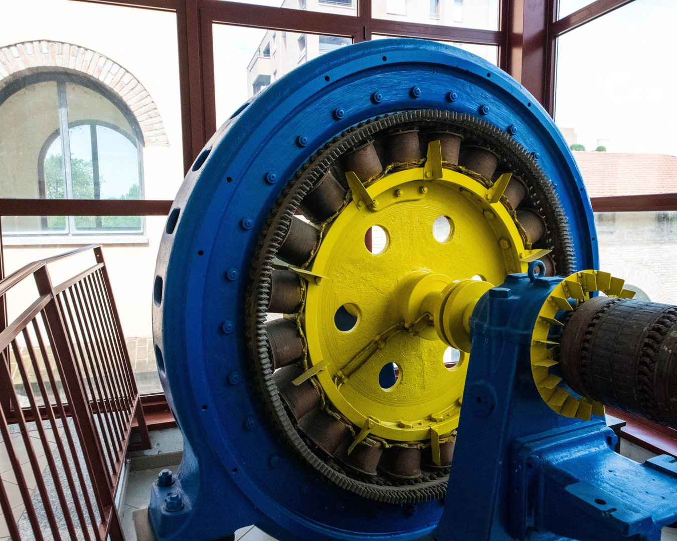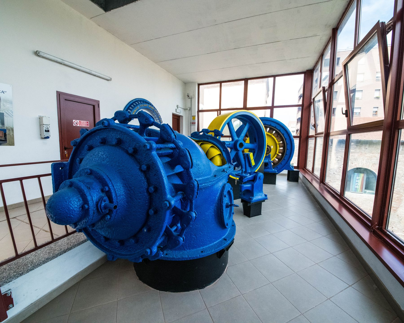 Nel vano vetrato all’ingresso dell’impianto è stata allestita anche una piccola area museale a fini didattici con vari reperti idraulici tra cui una turbina di tipo Francis (fig. 2) e un alternatore della ditta Tecnomasio Italiano (fig. 3).