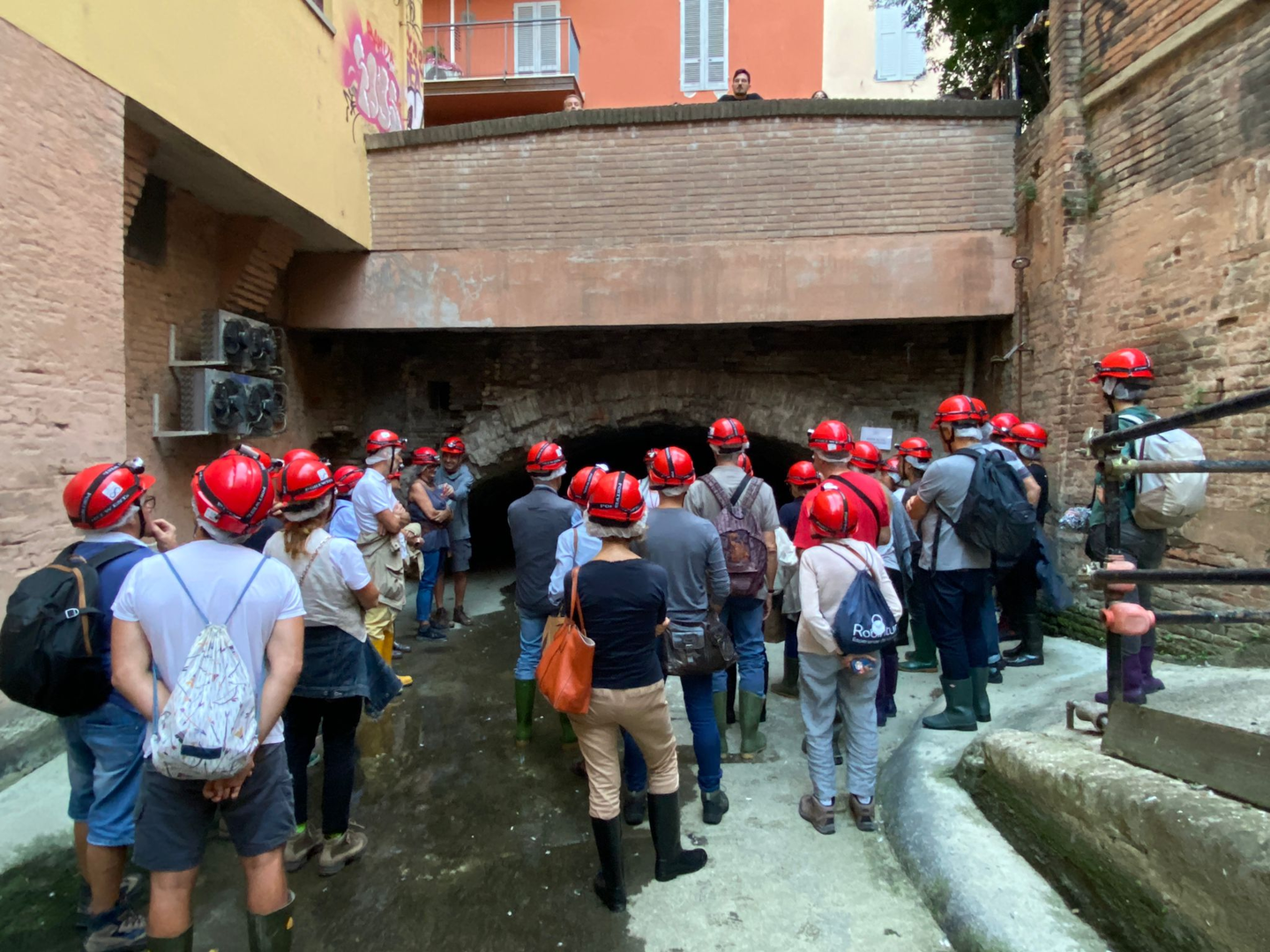 Per consentire di svolgere la manutenzione annuale che solitamente si tiene in ottobre, questa paratoia viene chiusa in contemporanea con l’altra collocata presso la Chiusa di San Ruffillo sul torrente Savena: il reticolo artificiale piano piano si svuota in modo da poter essere perlustrato e manutenuto. Ricordiamo che Canali di Bologna durante la secca annuale organizza anche visite guidate in alcuni tratti sotterranei del Canale di Reno (fig. 3). Per essere informati su queste e altre iniziative consigliamo di iscrivervi alla nostra newsletter a questo link: https://www.canalidibologna.it/it/newsletter.php