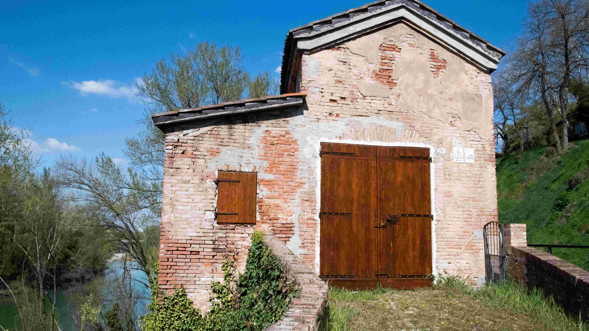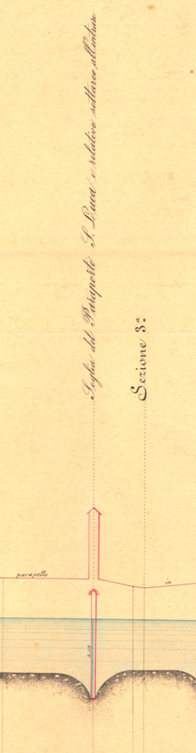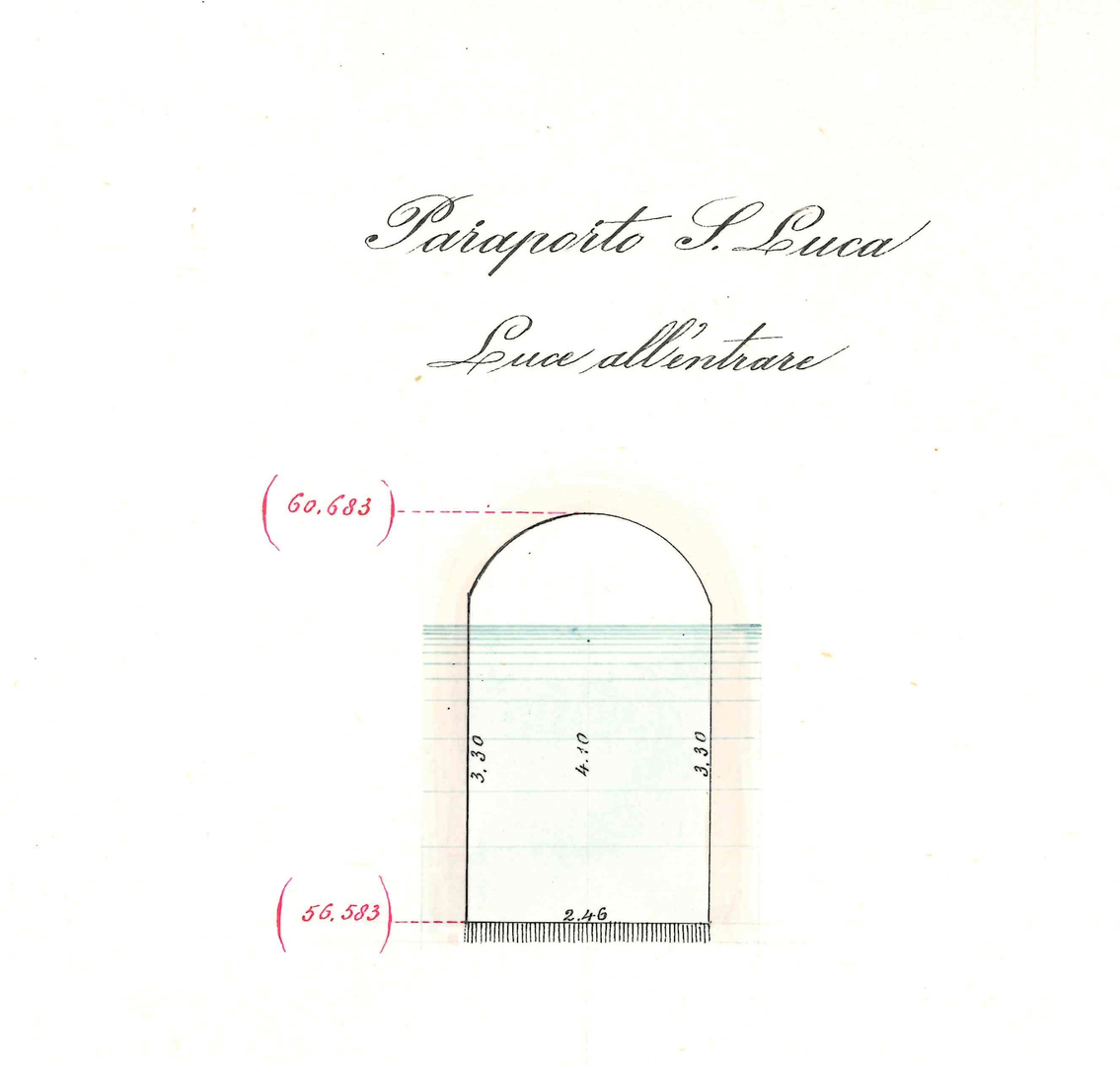 La piccola costruzione a cavallo tra fiume e canale che si può scorgere da questo punto è ciò che si nota dall’alto del Paraporto San Luca (fig. 1). Con il termine ‘paraporto’ s’intende un’apertura più bassa rispetto al piano di scorrimento del canale, regolata da una paratoia verticale usata per riportare parte dell’acqua dal canale al fiume (fig. 2).