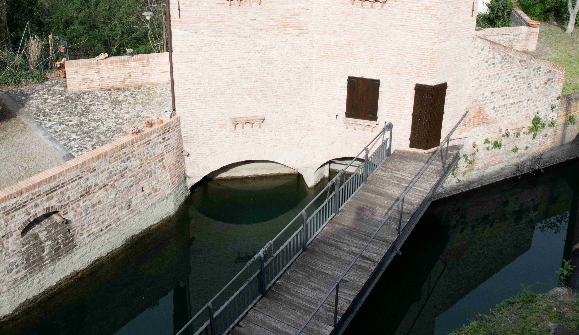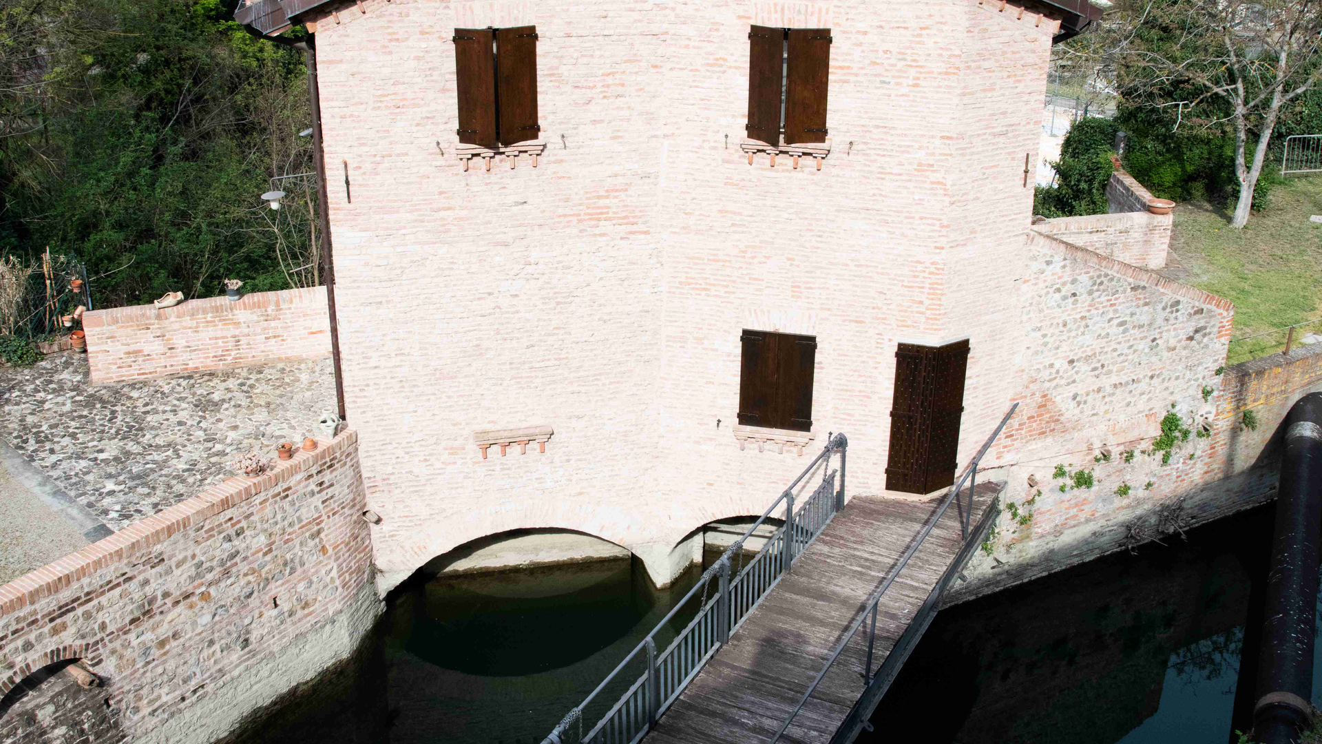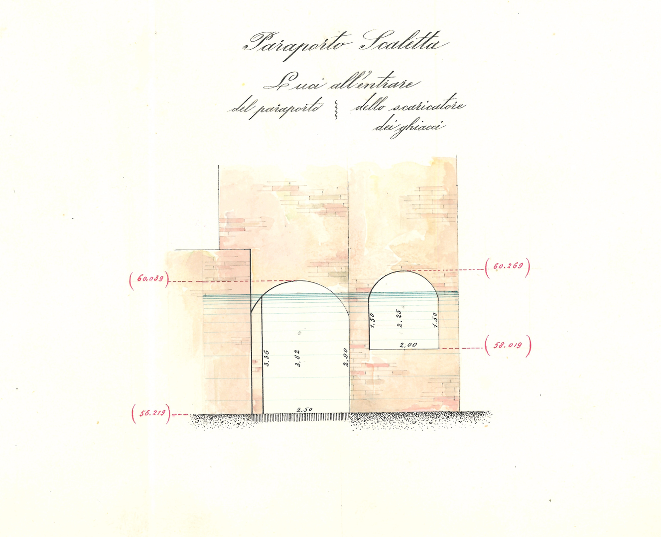 Osservando da vicino il fabbricato si nota che quest’ultimo poggia su due archi (fig. 2), il primo dei quali corrisponde al Paraporto Scaletta, il quale dà nome anche al sito. Aprendo la paratoia corrispondente a questo arco nel canale si forma una forte corrente tale da trascinare la maggior parte dei depositi sul retro della costruzione dove ricadono in un piccolo bacino per poi tornare nel fiume. L’operazione di pulizia svolta da questo paraporto è importante per evitare l’interrimento dell’alveo della via d’acqua artificiale e per il mantenimento della sua capacità di vettore idrico.