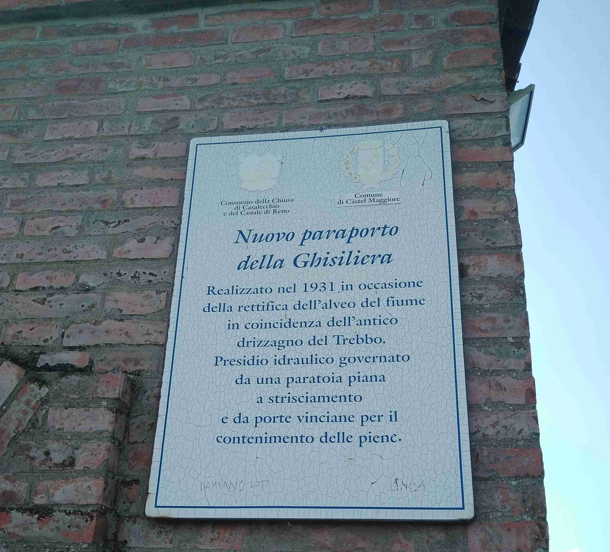 Fig. 4. Cartiglio del nuovo paraporto della Ghisiliera, foto Archivio Canali di Bologna, 2020.