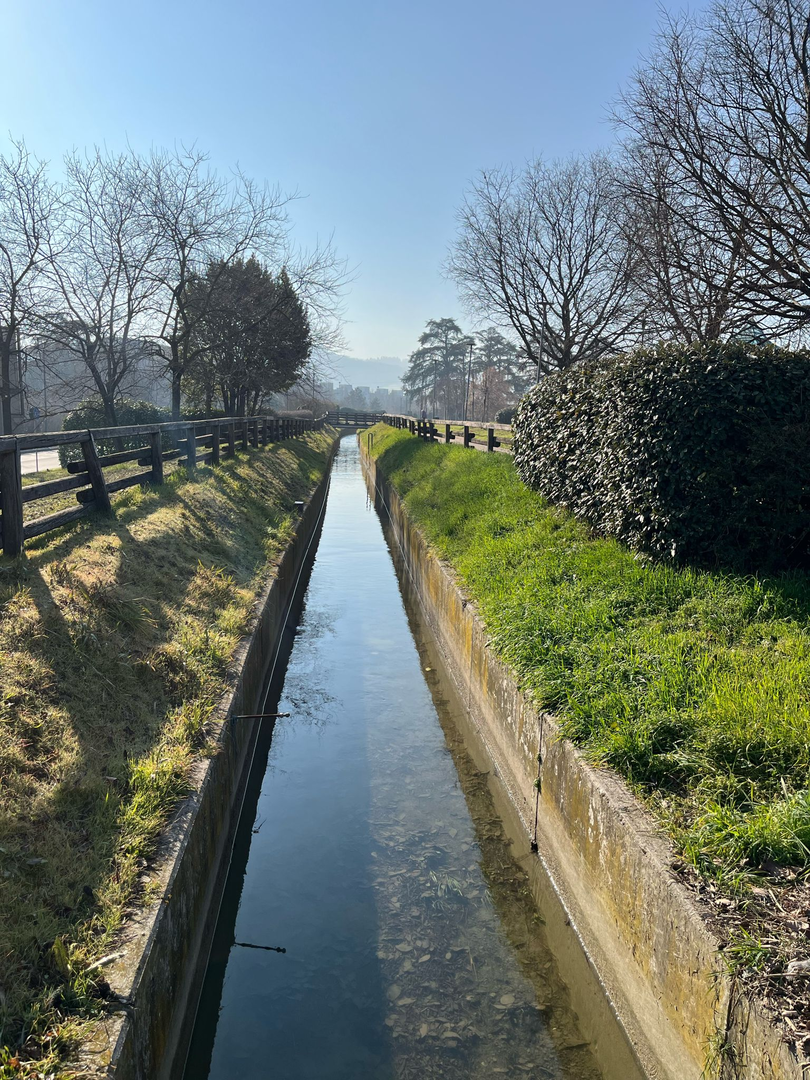 Oltrepassata via di Frino – nome riferito all’antico mulino, attualmente adibito a civile abitazione – il canale attraversa i Giardini Margherita.