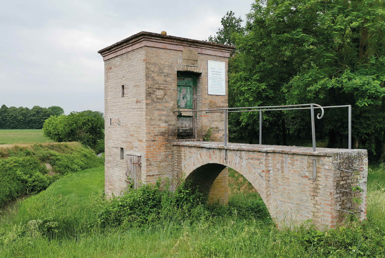 Superata la Chiesa di San Martino di Bertalia prosegue fino all’ex Molino di Pescarola (fig. 4) corrispondente al civico 44 di via Selva di Pescarola, in funzione fino al 1952. Questo mulino fu costruito all’inizio del XVI secolo da Giovanni II Bentivoglio, poi passò alla famiglia Malvasia. Prima di confluire nel fiume Reno la Canaletta Ghisiliera alimentava il Molino Borgognino o di San Guglielmo (fig. 5) attivo fino al 1955, costruito nel 1525 da Ercole Borgognini in società con i Ghisilieri. A poca distanza, prima dello sbocco nel fiume Reno, resta l’antico Paraporto (fig. 6) di regolazione delle acque, rimasto in funzione fino alla fine del XIX secolo.