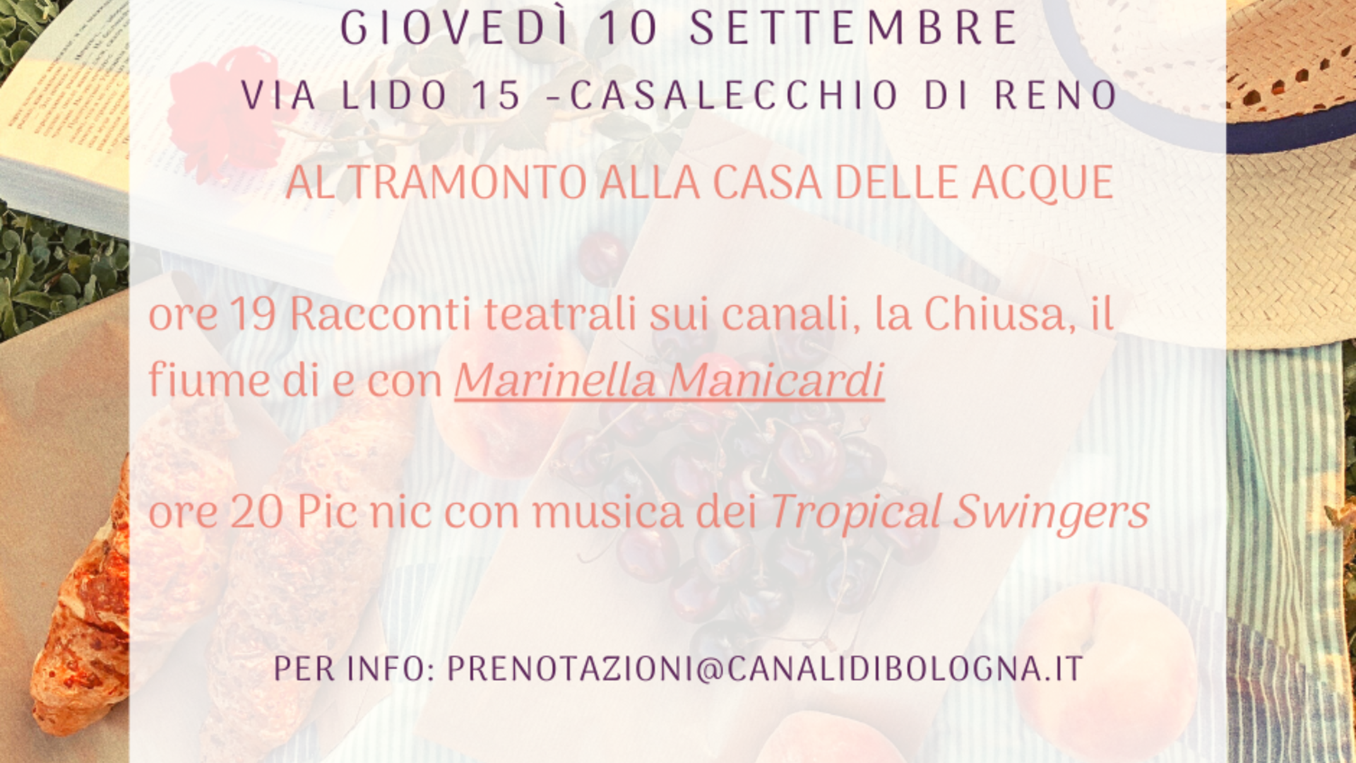 Racconti teatrali sui canali, la chiusa e il Fiume Reno di e con Marinella Manicardi a seguire Pic Nic con i Tropical Swingers