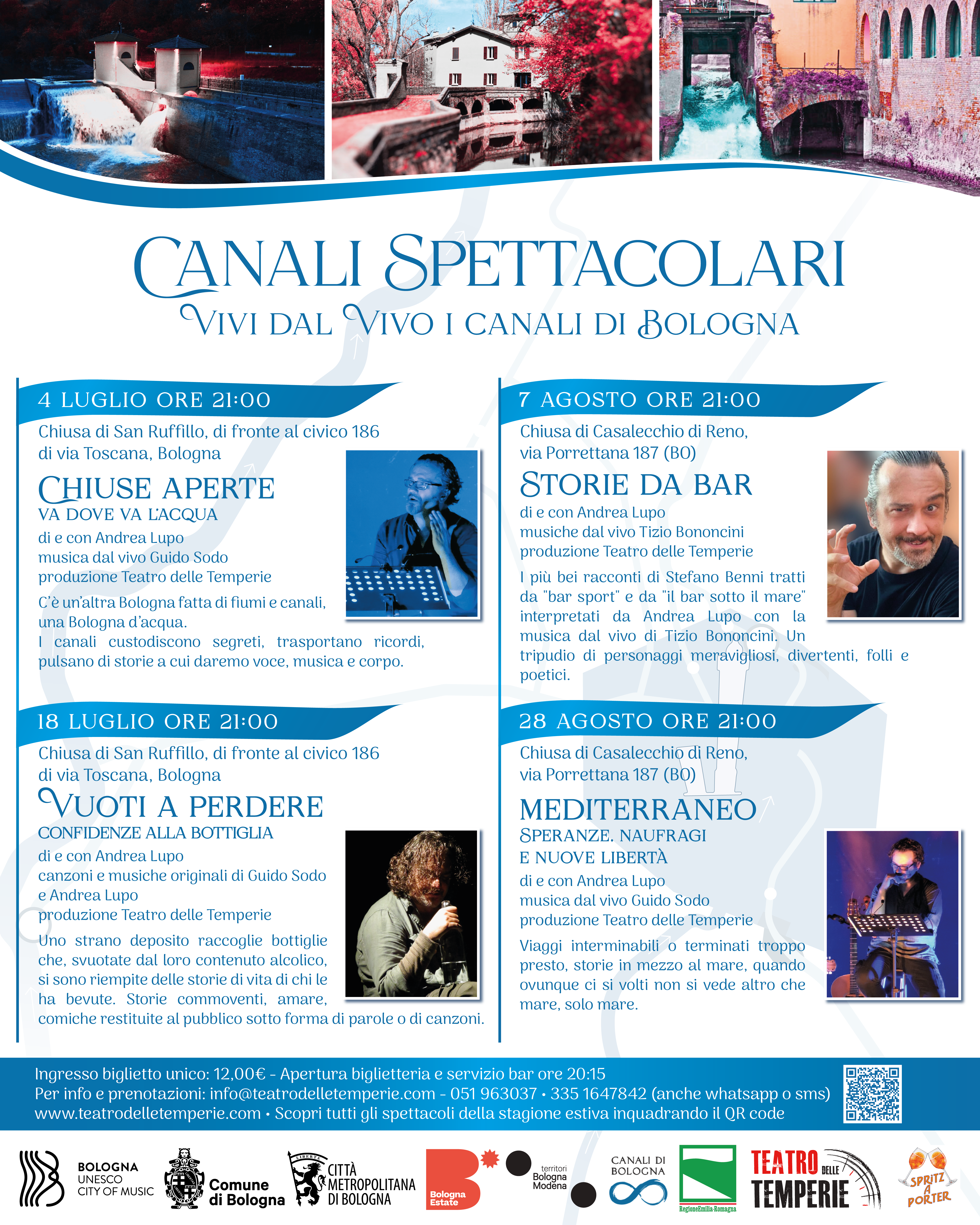 La rassegna “Canali Spettacolari” è un progetto organizzato in collaborazione con “Canali di Bologna – Consorzi dei Canali di Reno e Savena” e fa parte di Bologna Estate 2023, il cartellone di attività promosso e coordinato dal Comune di Bologna e dalla Città metropolitana di Bologna - Territorio Turistico Bologna-Modena.
