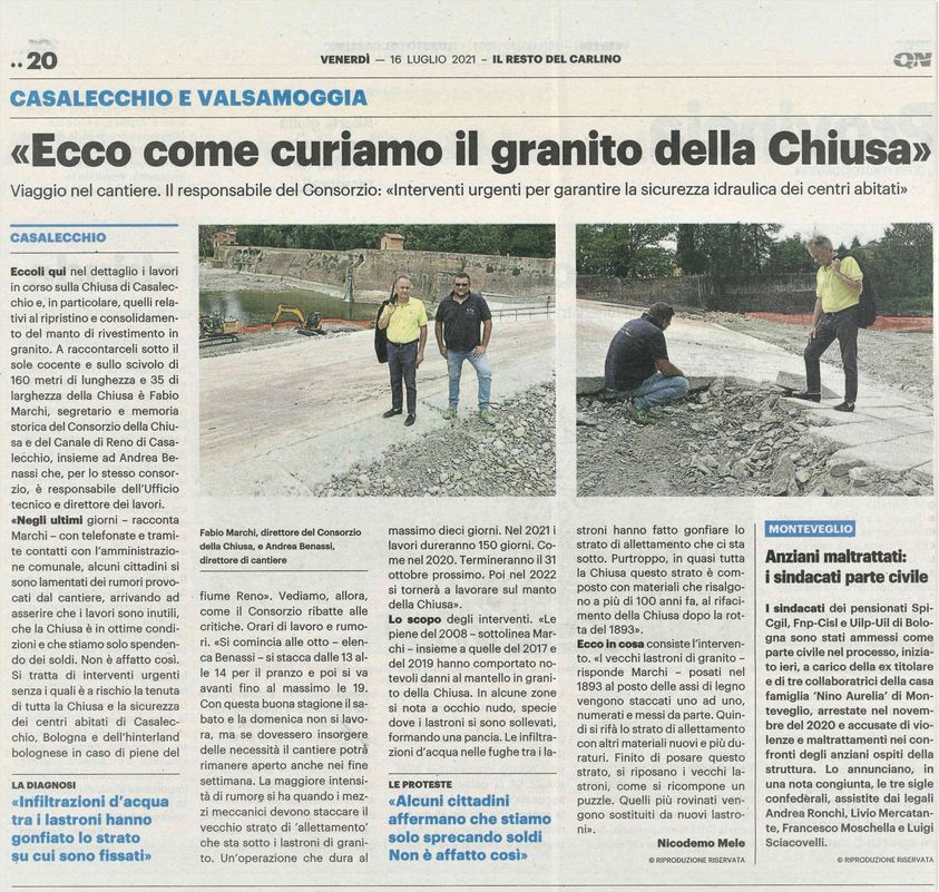 Il Resto del Carlino ha pubblicato un interessante articolo che spiega i lavori in corso presso la Chiusa di Casalecchio.