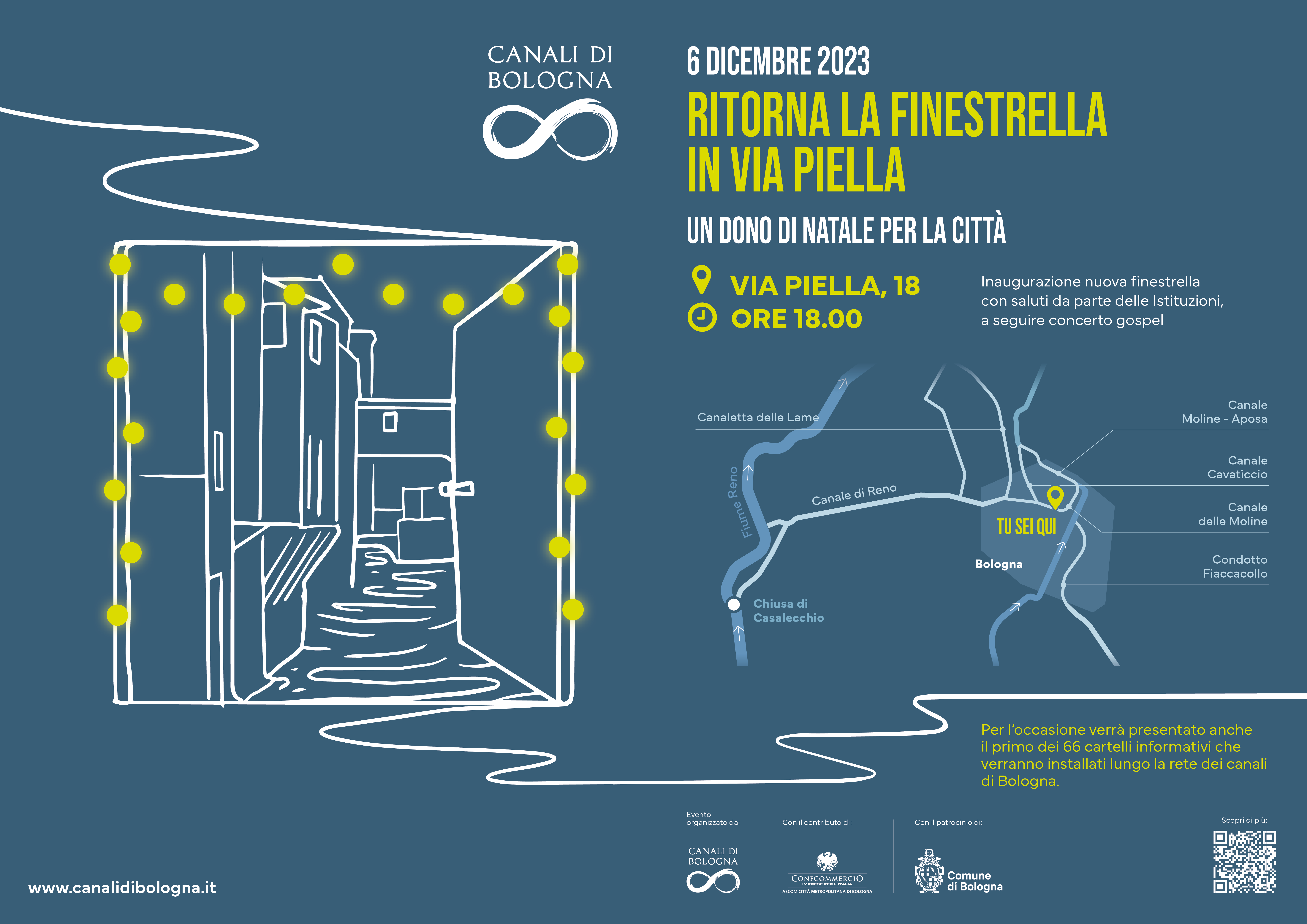 L’inaugurazione dell’installazione della finestrella, accompagnata da una cerimonia impreziosita da un coro gospel del Joy gospel choir, si terrà in data 6 dicembre alle ore 18:00 in via Piella e vedrà la partecipazione di: